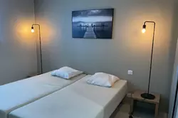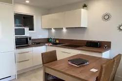 Offrant : Séjour avec coin cuisine aménagée & équipée donnant sur une loggia fermée et le jardin, une chambre cabine (2 lits 90) avec rangement, une salle d'eau & toilette, une chambre avec placard & salle d'eau wc. Une place de stationnement privé.