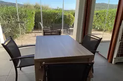 Résidence Les Restanques: A louer à l'année appartement meublé de 50 m² hors loggia en rez de jardin non clôturé vue mer, dans une résidence sécurisée avec piscine sur la commune de Grimaud.