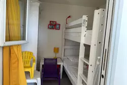 Se compose : Séjour avec coin cuisine, salle d'eau avec wc, chambre cabine & Une chambre en mezzanine avec toilette et lave mains.